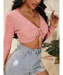 Disponible Carro Tops de Punto para Mujer SHEIN SXY Jersey corto con cordón delantero Precio 11,92 $ Eliminar de lista Lista de deseos