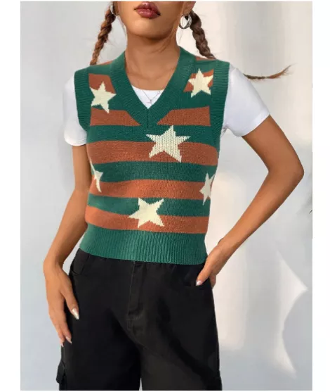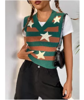 SHEIN EZwear Chaleco de punto con patrón de estrella de rayas sin camiseta
