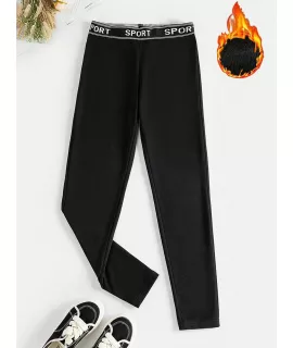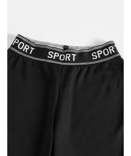 SHEIN LUNE Leggings Con Estampado De Letras Y Cinturilla De Jacquard Para Mujer