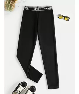 Color: Negro, Estilo: Casual, Tipo de Estampado: Letras, Línea del Talle de la Cintura: Talle alto, Longitud: Largo, Detalles: Cinta, Tipo: Normal, Temperatura: Finales de Otoño (10-17?/50-63?), Tejido: Elástico Alto, Material: Tela, Composición: 97% Poliéster, Composición: 3% Elastano, Instrucciones de Cuidado: lavadora o limpieza en seco profesional, Forro: Sin Forro, Transparente: No