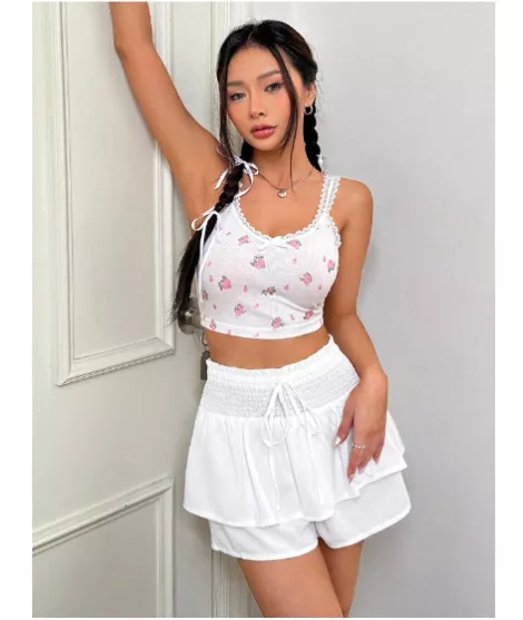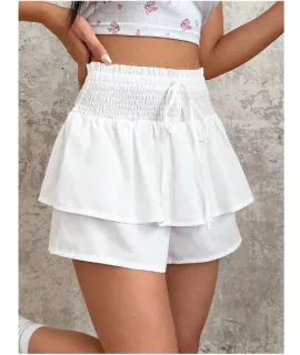 SHEIN EZwear Shorts de cintura con volante de cintura con nudo bajo con fruncido
