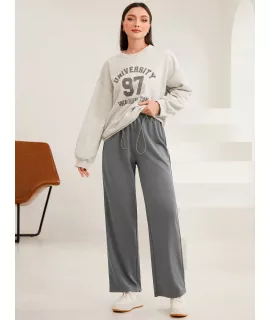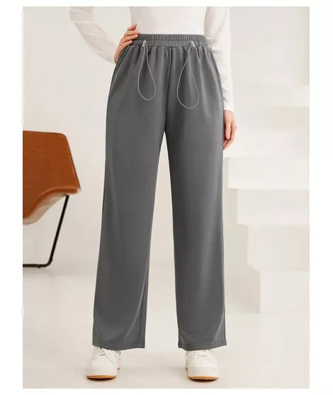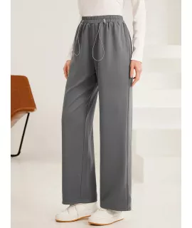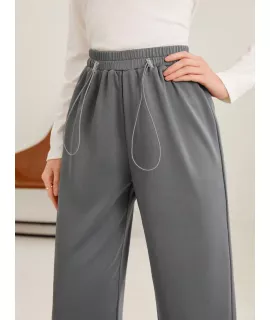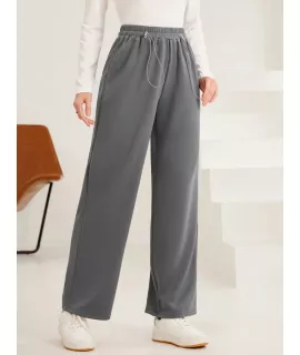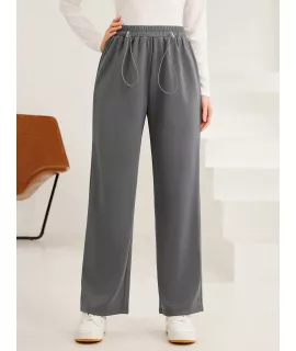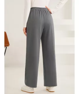 Color: Gris, Tipo: Pierna recta, Tipo de Estampado: Liso, Línea del Talle de la Cintura: Talle alto, Detalles: Bolsillo, Detalles: Cordón, Longitud: Largo, Tipo de ajuste: suelto, Temperatura: Primavera/Verano (18-25?/63-77?), Tipo de cierre: Cintura elástica, Tejido: Elástico Ligero, Material: Tela tejida, Composición: 100% Poliéster, Instrucciones de Cuidado: Lavadora, no limpiar en seco, Forro: Sin Forro, Transparente: No