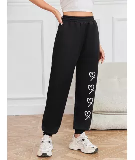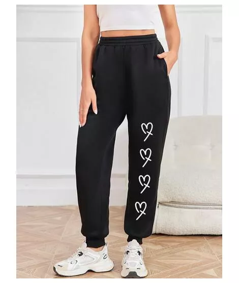 SHEIN LUNE Pantalones De Chándal Impresos Con Patrón De Corazón Para Mujeres