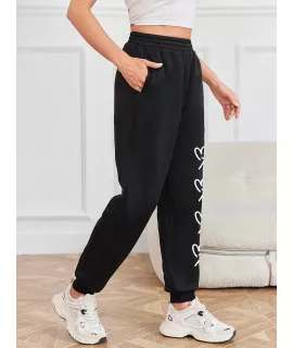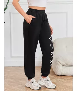 Color: Negro, Tipo de Estampado: Corazón, Tipo: Jogger, Línea del Talle de la Cintura: Natural, Detalles: Bolsillo, Longitud: Largo, Tipo de ajuste: suelto, Temperatura: Primavera/Verano (18-25?/63-77?), Tipo de cierre: Cintura elástica, Tejido: Elástico Ligero, Material: Tela tejida, Composición: 100% Poliéster, Instrucciones de Cuidado: lavadora o limpieza en seco profesional, Forro: Sin Forro, Transparente: No