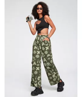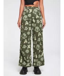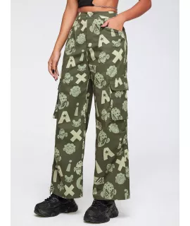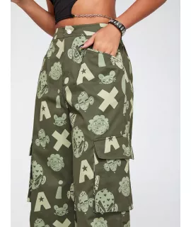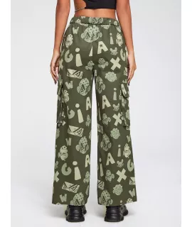Color: Verde militar, Estilo: Casual, Tipo de Estampado: Letras, Tipo de Estampado: Dibujos animados, Tipo: Pantalones cargo, Detalles: Botón, Detalles: Bolsillo, Detalles: Cremallera, Tipo de cierre: cremallera, Línea del Talle de la Cintura: Natural, Longitud: Largo, Tipo de ajuste: suelto, Tejido: No-Elástico, Material: Tela tricotada, Composición: 100% Poliéster, Instrucciones de Cuidado: Lavado a máquina, no limpiar en seco, lavar con un detergente suave, Temperatura: Primavera/Verano (18-25?/63-77?), Forro: Sin Forro, Transparente: No